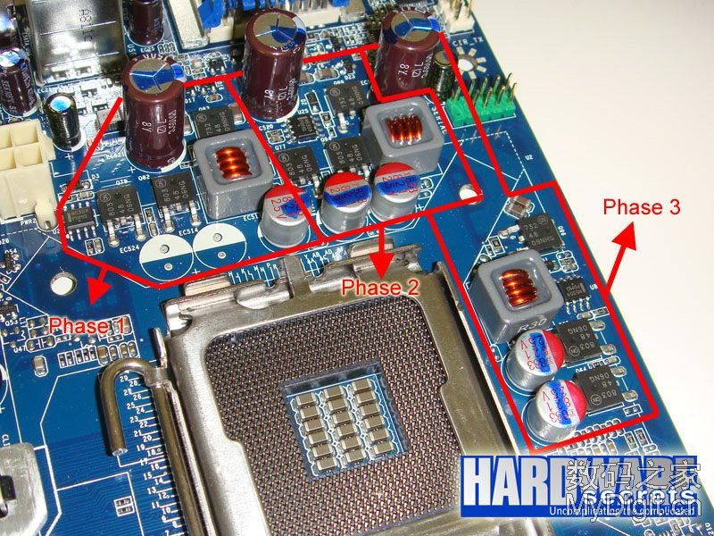 There is one exception. There are some motherboard chipsets and memory power supply inductors located near the CPU . It is not accurate to rely solely on the number of inductors to determine the number of power supply phases. Below : Although it seems to have four phases, it is three-phase, just like the only three phases are used to generate the CPU voltage ; in this motherboard, the fourth phase is used to generate the memory voltage. We want to teach you how to get the accurate phase number in one second.
