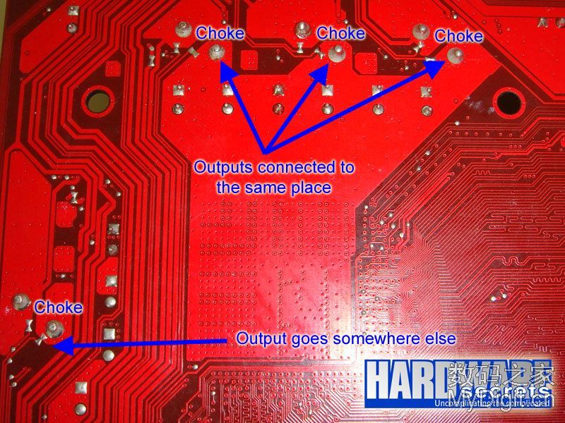 One of the four inductors on the back of the motherboard should be ignored. In Figure 11, you can see that the inductance in the motherboard’s CPU power supply module is the same pole … Because all the inductances in the same phase produce the same level, only those connected together should be calculated . This can be seen through the copper surface. In Figure 13 we show that the inductors are soldered together. As you can see in Figure 12 , only three inductors are connected together, and the fourth inductor goes to the memory slot.