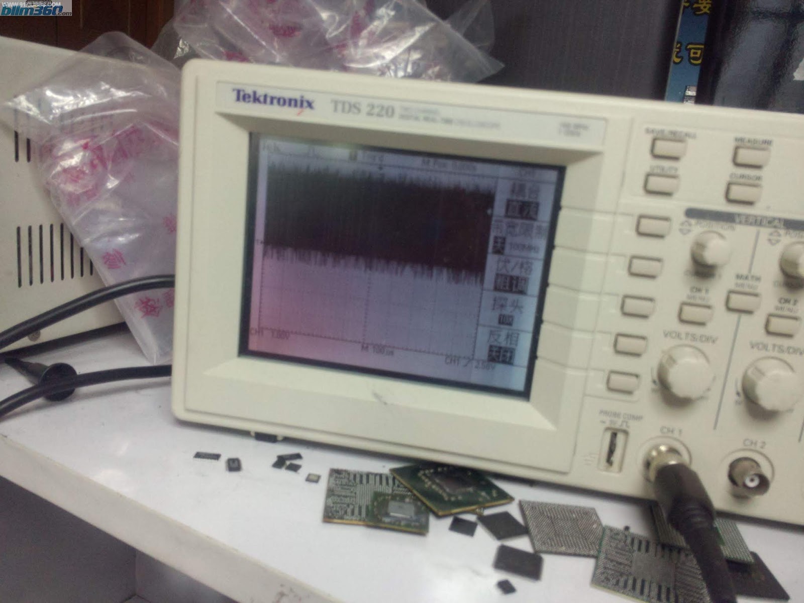 decisive the amount of the LPC bus, found one pair value, decisively fly line power again ran the code, but the current into memory at repeatedly jump, just do not go up, wave an amount of memory, but can not be sustained sawtooth waveform exclude memory CPU directly on the BGA plus welding Northbridge, OK this machine repair