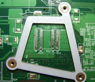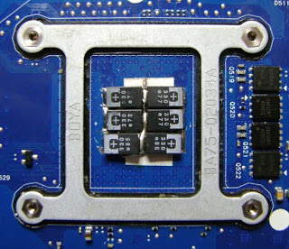 You can see, it has four rows of metal needle (silver tin with), of which around two capacitor positive, intermediate 2 is the negative terminal of the capacitor, at this time we can use a wire to the middle of two the way even one out ( because the two lines is, of course, you put two and even up and cited a line out can) do the public the negative electrode of the capacitor, the capacitance of 6 330 notebook motherboard and then go on to find all six positive outwards, 6 a negative even together received just leads to the public’s negative online, you need to pay attention to the insulation, positive and negative that they do not touch each other on it, you can play with a multimeter positive resistance to ground without CPU will hundreds Europe, coupled with the CPU for about 10 or so in Europe, but definitely not Europe, complete good diagram as shown below.
